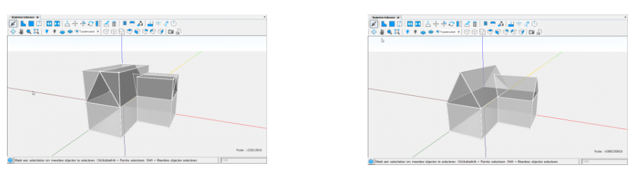 - Tussenwanden niet transparant: Gebruik deze view voor het tekenen of bewerken, er is meteen duidelijk waar aparte ruimtes zijn