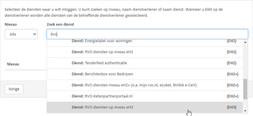 Om energielabels te registreren heb je minimaal eHerkenning niveau 3 nodig. Inloggen doe je met je gebruikersnaam, wachtwoord, aangevuld met een SMS. De leverancier waar je de eHerkenning afneemt dient “RVO diensten op niveau eH3” beschikbaar te maken voor jouw account.