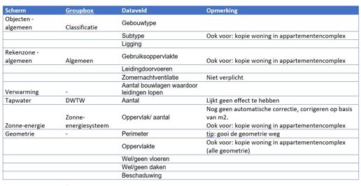 Datavelden die anders (kunnen) zijn en nagelopen dienen te worden: