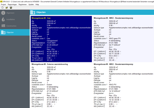 Als eerste voer je het appartementencomplex als geheel in. Tip: maak eenvoudig varianten aan door het object te kopiëren en de invoergegevens te wijzigen. Denk hierbij aan de volgende concepten[1]: