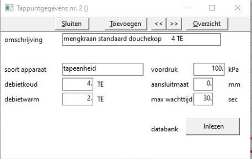In versie 10.70 is het nu mogelijk om de wachttijden te berekeningen van tappunten. In Isso 55 staat in specificatie blad II.4-3 [Maximale lengte uittapleiding] formules gegeven voor de berekening van de wachttijd bij tappunten. Dit kan per tappunt verschillen. Voor bijvoorbeeld een douche mengkraan zou dit 30 sec kunnen zijn en voor een keukenmengkraan is het weer anders. Bij een bad maakt het niet veel uit wat de wachttijd is, tenzij deze als douche gebruikt kan worden. Deze wachttijden kun je nu berekenen.