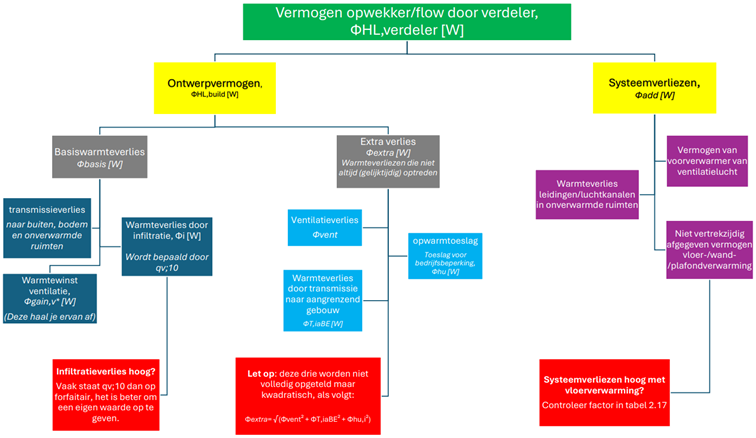 - Ventilatieverlies anders dan verwacht: De ventilatieverliezen worden niet gewoon bij elkaar opgeteld, maar kwadratisch gecombineerd. Hierdoor kan het totaal afwijken van wat je bij een gewone optelsom zou verwachten.