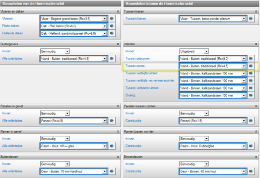 In het Bouwkundig sjabloon kun je straks kiezen voor een automatische toewijzing van een constructie voor wanden tussen zones. Er wordt gekeken naar de zones die zijn opgegeven bij Eigenschappen-Zones, deze zijn nu voor alle modules zichtbaar.