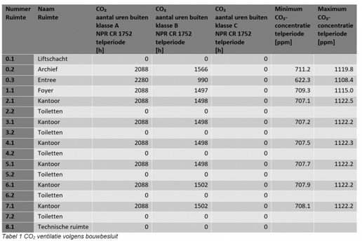 In het Bouwbesluit zijn eisen opgenomen ten aanzien van het realiseren van ventilatiecapaciteiten in verblijfsruimten. Het gaat hierbij om minimale eisen, die gebaseerd zijn op een CO2-concentratie van 1.200 ppm.