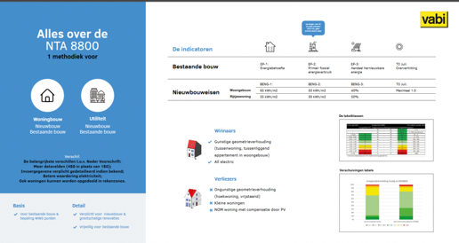 Wij blijven je op de hoogte houden van de ontwikkelingen van de NTA 8800 en onze software? Bekijk hiervoor onze informatiepagina. Ben je nu al nieuwsgierig geworden en wil je weten welke invoer er nodig is voor de NTA 8800 en wat de EP-2 wordt van je woningen? Download dan de betaversie van Vabi Assets Energie. Hiermee krijg je een goed beeld van de nieuwe methodiek.