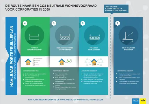 Vabi en Ortec Finance hebben de stappen naar een CO2-neutrale woningvoorraad overzichtelijk in een Infographic gezet. Hierin laten we zien hoe je in vier stappen de energieopgave vertaalt in uitvoerbare plannen voor de komende 10 tot 15 jaar. In dit artikel lichten we de stap toe: start met assetmanagement.