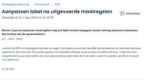 De EP-adviseur moet op basis van de aangeleverde stukken vaststellen wat de verbetermaatregel inhoudt en of het bewijsmateriaal voldoende is. Er moet minimaal een offerte met opdrachtverstrekking of een factuur in combinatie met een werkbon aanwezig zijn waaruit de genomen maatregel blijkt. De documenten met onderbouwing moet je als zodanig herkenbaar opslaan in het oorspronkelijke projectdossier.