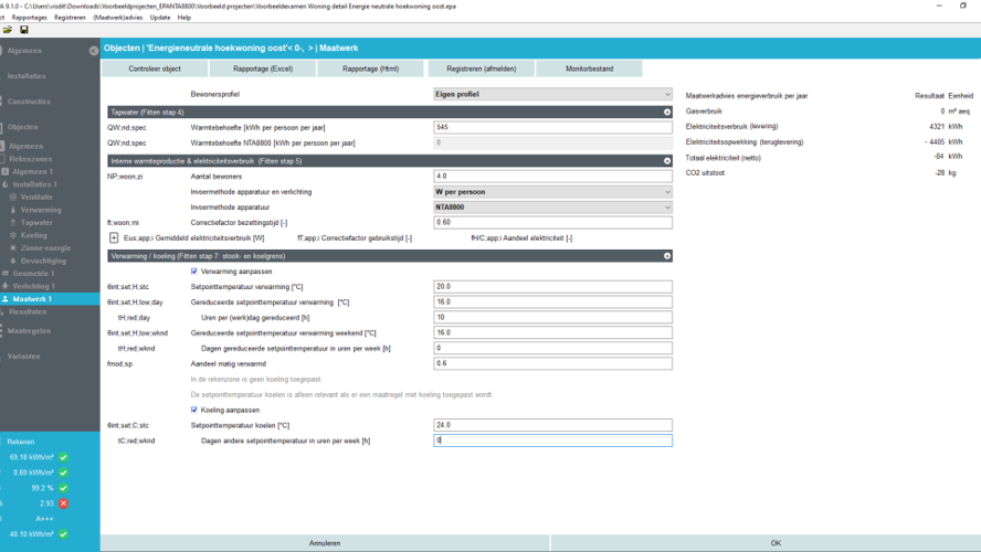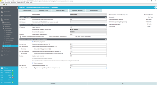 In september gaan we de eerste versie uitbrengen. Een eerste versie van de maatwerkadvies rekenkern zal dan beschikbaar zijn. De praktijkfactoren zijn hierin verwerkt, deze zullen resulteren in een beter berekend energieverbruik. Daarnaast zijn de gebruiksfactoren opengesteld en deze kunnen aangepast worden. Benieuwd welke invoerparameters gewijzigd kunnen worden? Bekijk de volgende screenshot voor een sneak preview.