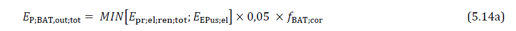 De factor fBAT kijkt naar de aanwezige opslagcapaciteit. Als deze 5kWh of meer is, dan is deze factor gelijk aan 1. Is de capaciteit lager, dan is deze 0 en vervalt EP;BAT.