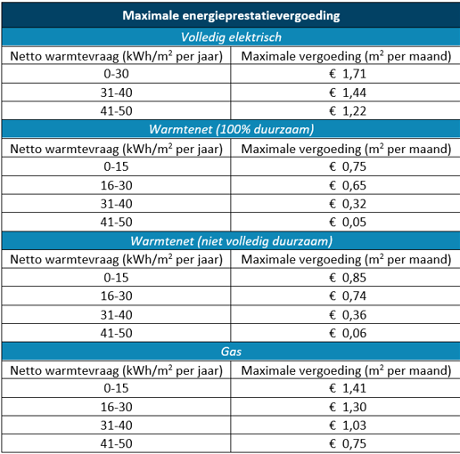 In de onderstaande tabel vind je de maximale bedragen per warmtebron.