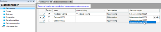 En vervolgens koppel je bij Eigenschappen – Gebouwen welke gebouwen er in welk gebouwcomplex zitten: