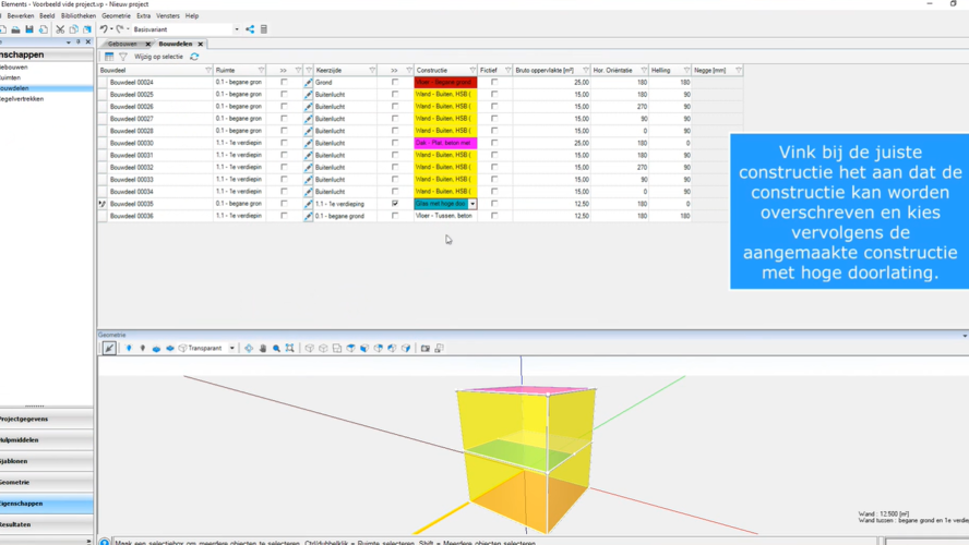 In Vabi Elements wordt er met volumes gewerkt, om een zo nauwkeurig mogelijke berekening te garanderen. Dit zorgt ervoor dat er in de geometrie van Elements niet zomaar een Vide kan worden getekend. Bij ruimtes waar sprake is van een vide en dit van grote invloed zou kunnen zijn op de berekening, is er voor Gebouwsimulatie een manier een vide of vergelijkbare situatie in te voeren. Dit is bij de module Warmteverlies ook mogelijk, maar niet aan te raden.