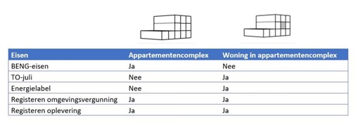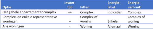 In het nieuwe maatwerkadvies zijn beide niveaus beschikbaar. In de conceptprotocol ‘teksten’ staat voorgeschreven dat een maatwerkadvies over het niveau van ‘appartementencomplex’ gaat. Dit is nog niet de definitieve tekst en deze is nog niet voorschreven.