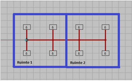 Om van deze ruimten aparte geluidsberekeningen te maken kopieerde je in de oude versie Rooster nr 6 voor Ruimte 2 en vulde je alle gegevens opnieuw in. Dit nieuwe rooster kon dan aan een nieuw vertrek worden toegewezen. Maar dit nieuwe vertrek kon dezelfde eigenschappen hebben wat betreft de geluidseisen. Alleen zo kon voor Ruimte 1 en voor Ruimte 2 een aparte berekening worden gemaakt.