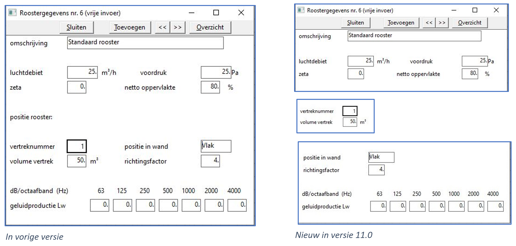 Dit is in versie 11.0 veranderd in een opsplitsing van het scherm roostergegevens, zie afbeelding hieronder.