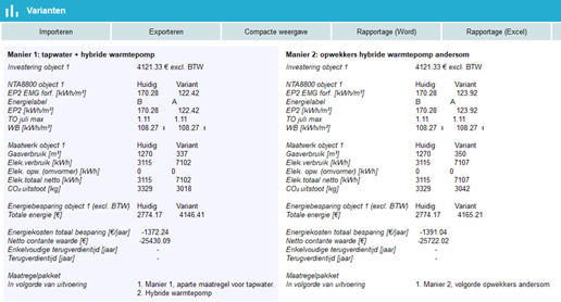 Afbeelding 1: maatregel hybride warmtepomp in 2 varianten