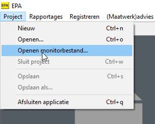 Als alternatief kun je inloggen op EP-online en het monitorbestand downloaden. Via Project, Open monitorbestand kun je deze openen in de oorspronkelijke versie van Vabi EPA.