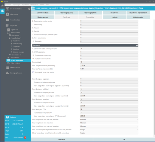 Met de module Energie & WWS in Vabi Assets Energie krijg je direct inzicht in de WWS-punten, zie de afbeeldingen hieronder. Hiermee bepaal je eenvoudig de maximale huur voor jouw woningvoorraad. Wil je meer weten over deze functionaliteit? Neem dan contact met ons op.