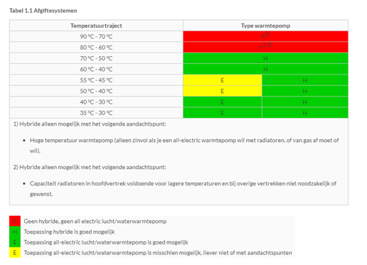 - Warmtepomp als preferente opwekker met een opgegeven vermogen en rendement;