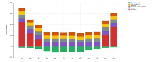 Ook de opbrengst van eventuele zonnepanelen is zichtbaar: