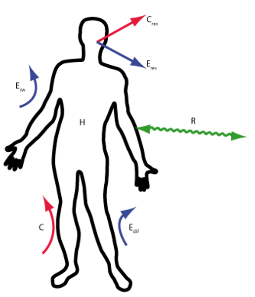 De interne warmte productie door personen bestaat uit drie delen: