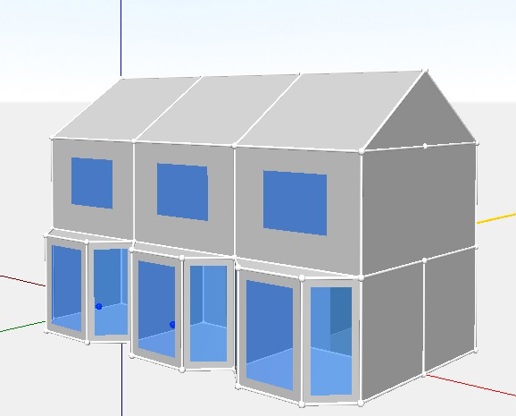 Om de verliezen naar aangrenzende woningen inzichtelijk te maken zijn er natuurlijk wel aangrenzende woningen nodig. Er is gekozen om hier twee rijtjeswoningen door te rekenen, een met hoekligging, een met tussenligging, zoals te zien in figuur 4.