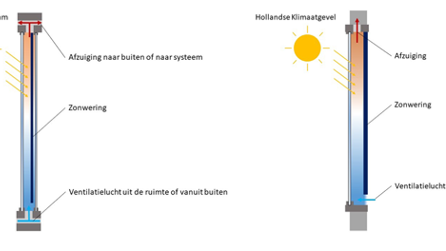 In Vabi Elements kun je de Hollandse klimaatgevel selecteren, wanneer er binnen zonwering aanwezig is. Ook bij de Hollandse klimaatgevel zal worden uitgegaan van volledige afzuiging bij het raam.
