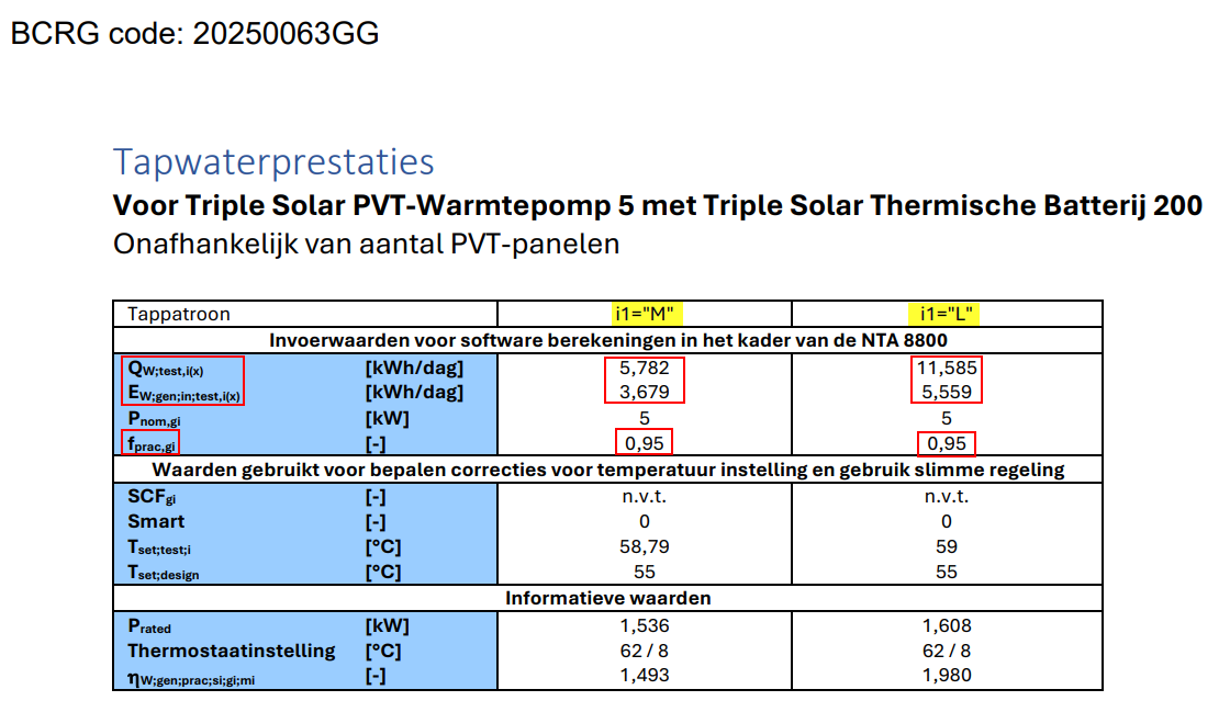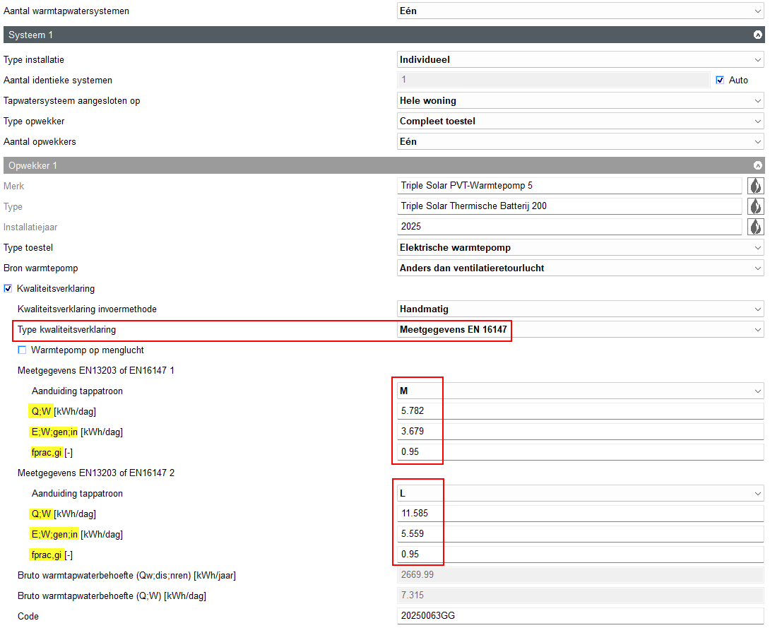 Als de berekende bruto warmtapwaterbehoefte groter (of kleiner) is dan is toegestaan op de kwaliteitsverklaring vermeld is, dan mag je de verklaring niet gebruiken.