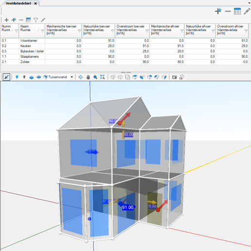 Voor warmteverlies en gebouwsimulatie kun je zelf instellen hoe de luchtstromen binnen een gebouw moeten lopen om de berekeningen dichter bij de werkelijkheid te laten komen. Zo kun je lucht bijvoorbeeld laten toevoeren in een woonkamer of kantoorruimte en laten afzuigen in de gang of toiletruimte. Dit artikel geeft uitleg hoe je dit het beste kunt invoeren en waar je op kunt letten. Daarnaast krijg je tips over hoe je je ventilatiestromen inzichtelijk kunt krijgen in tabellen en 3D.