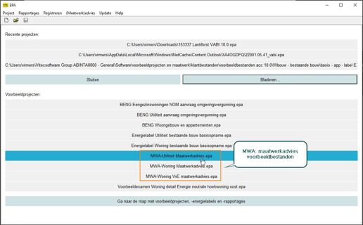 Er worden twee rapportages meegeleverd met de software, voor Woningbouw en voor Utiliteit. Deze kun je eenvoudig vinden vanuit Vabi EPA Maatwerkadvies als je een Word rapportage wilt maken.