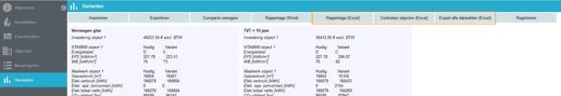 Klik op de knop ‘Rapportage’ om de documenten aan te maken. Afhankelijk van het aantal objecten en varianten kan dit enkele tot meerdere minuten duren.
