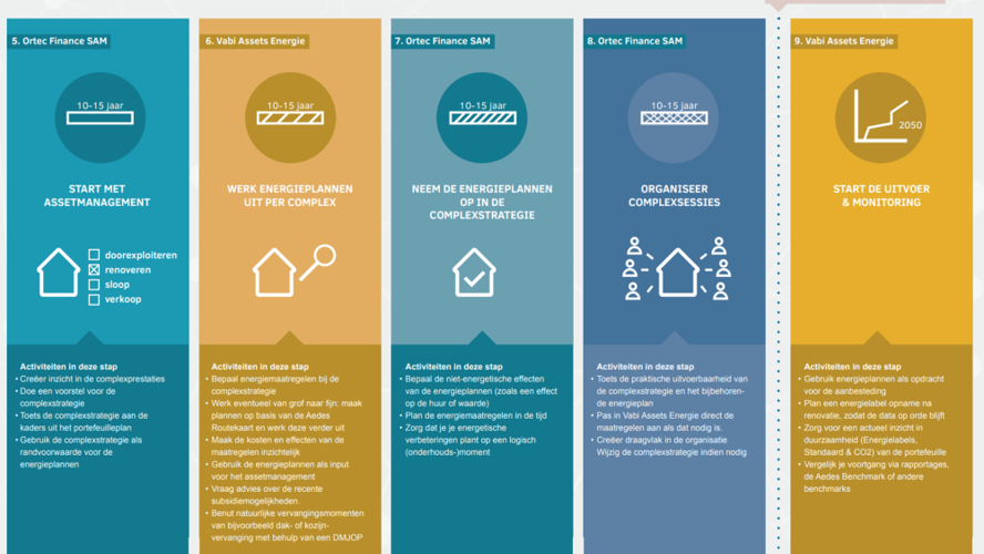 Verduurzaming van de woningvoorraad is één van de grootste opgaven voor de woningcorporaties. Iedereen is zich bewust van de noodzaak, maar echt concreet plannen maken lijkt nog moeilijk en ver weg. Ter ondersteuning van deze opgave hebben wij, Vabi en Ortec Finance, een routekaart opgesteld. Met deze concrete stappen, en met behulp van onze software, helpen wij corporaties met het verduurzamen van de voorraad in 2050.
