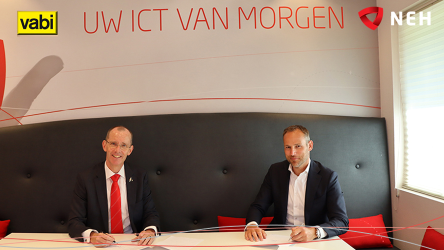 Twee marktleiders in de corporatiesector hebben de handen ineen geslagen om een hosted oplossing van Vabi Assets Energie te leveren: Vabi Assets Energie Hosted. Bijna onwennig na twee maanden weer in pak en op grotere afstand van elkaar dan gewenst, tekenen directeuren Bart Jalink (Vabi) en Jan Pieter Cleveringa (NEH) een samenwerkingsovereenkomst die veel inniger is dan de coronatijd weerspiegelt. Door deze jarenlange samenwerking formeel te bekrachtigen wordt dit partnership versterkt.
