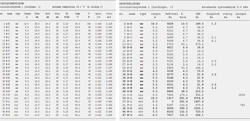 - Bepaal nu alle drukverliezen maar ook de diameters van alle leidingen n.a.v. deze flows rekening houdend met de maximale snelheid.