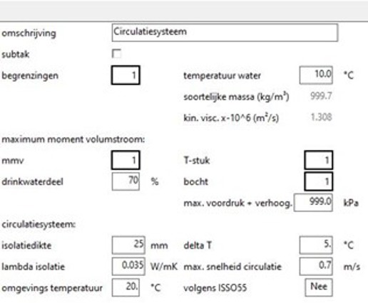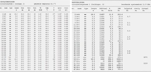 - In de publicaties staat een minimumsnelheid van 0.5 m/s in alle leidingen gegeven om de mogelijkheid te creëren om lucht uit het water te verwijderen. Dit wordt in het programma niet meegenomen.