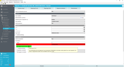 Aansluitwijze elektroboiler: de aansluitwijze voor de elektroboiler komt als invoer te vervallen; voor de heet of kokend waterkraan geldt hetzelfde, evenals bij een kwaliteitsverklaring voor een elektroboiler en heet- of kokendwater kraan. Er wordt gerekend met vaste waarden voor de aansluitwijze.