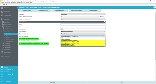 Voor verwarming zijn er hoge temperatuur bronnen toegevoegd. Bronnen met een temperatuur groter dan 15 graden worden gewaardeerd als systeem met externe warmtelevering. Om dit te berekenen is een kwaliteitsverklaring nodig.