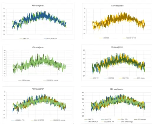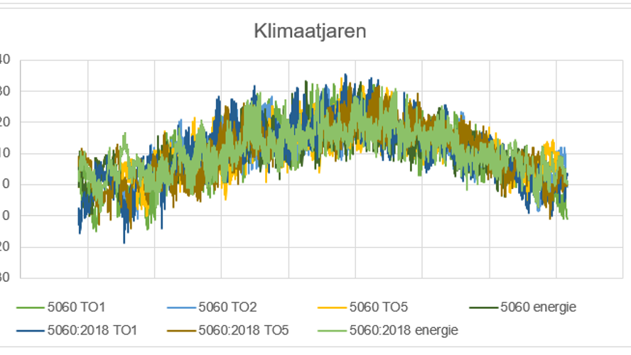 Ter verduidelijking is hieronder een vergelijking tussen de klimaatjaren te zien op basis van het verloop van de buitentemperatuur gedurende het fictieve jaar.