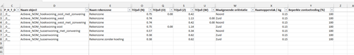 In het resultaten scherm zijn alleen de meest nadelige waarden te zien. In de export zijn alle datavelden van de resultaten voor elke rekenzone en oriëntatie in te zien op het tabblad ‘TO’: