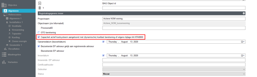 De adviseur hoeft deze berekening niet zelf op te stellen en hoeft ook niet te controleren of het opgestelde vermogen van het koelsysteem voldoet aan de berekening van de benodigde capaciteit. Het is voldoende om de verstrekte berekening toe te voegen in het projectdossier. In Vabi EPA of Vabi Assets Energie kan er bij de registratiegegevens, net als bij de aanwezigheid van een GTO-berekening, aangegeven worden dat er een berekening in het dossier aanwezig is.
