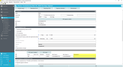 Op basis van gebruikersinput hebben we de werkwijze in Vabi EPA gebruiksvriendelijker gemaakt. In de oude EPA-W software was het nodig om een ‘Groep’ aan te maken en deze te koppelen aan een object. Nu is het mogelijk om simpelweg een lijst te hangen onder een object, onder ‘registratiegegevens invoer’. Om dit gebruiksvriendelijk te maken voor grote hoeveelheden woningen zijn de functionaliteiten CSV ex/import en BAG gegevens ophalen toegevoegd. De BAG gegevens kunnen zowel voor 1 object als voor de lijst van woningen opgehaald worden.