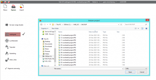 Bij iedere actie in het tekenscherm maakt de software automatisch een back up. Als je dan per ongeluk een verkeerde actie toepast, bijvoorbeeld het verwijderen van een stelsel deel, dan kun je altijd nog een vorige versie terughalen. Deze versie kan je vinden in de backup map.
