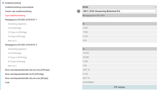 Het resultaat is dat je voor een kwaliteitsverklaring direct kan zoeken op de code of naam van de installatie en zo de juiste kwaliteitsverklaring kan selecteren die je wilt gebruiken. De waarden worden vervolgens direct ingevuld en geïnterpoleerd waar nodig. Op die manier reken je altijd met de juiste waarde en kost het je als adviseur geen extra tijd. De pdf kan je vervolgens nog met één druk op de knop openen in je browser, zodat je deze ook beschikbaar hebt voor je dossier.