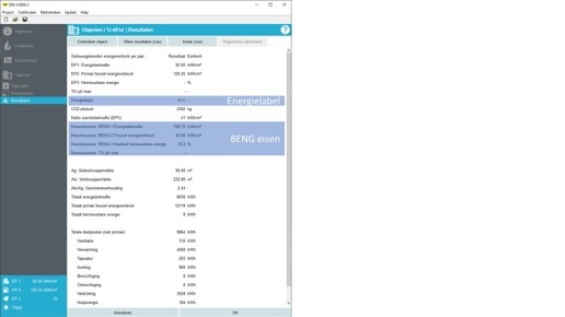 - Toetsen of een nieuwbouwproject voldoet aan de BENG eisen (de BENG eisen worden automatisch berekend).