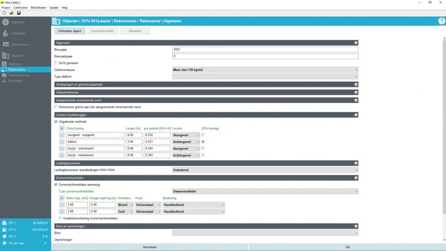 EPA NTA 8800.2 is een bètaversie. Nog niet alles is volledig en er is nog geen garantie dat alle berekende waarden hetzelfde zijn als de officieel geattesteerde software volgens de BRL 9501. Op de webpagina zie je welke functionaliteiten nog niet in deze softwareversie beschikbaar zijn.