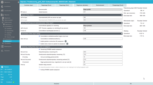 Wanneer er gebruik gemaakt wordt van het maatwerkadvies, worden er aan de rechterkant nu ook de resultaten van de maatwerkadvies berekening getoond. Dit is een berekening met eventuele gefitte parameters, maar met het gemiddelde referentieklimaatjaar voor het gekozen meetstation. Deze resultaten zijn dus anders dan de resultaten die te zien zijn in het maatwerkadvies scherm: