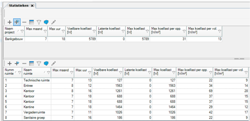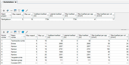 Het vochtgehalte buiten (projectgegevens, omgeving) en het vochtgehalte binnen (sjabloon ruimte-eisen) bepalen de latente koellast indien er met infiltratie (sjabloon ventilatie) wordt gerekend.