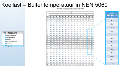 De buitentemperatuur is dus afhankelijk van de onder projectgegevens, omgeving gekozen klimaatfile.