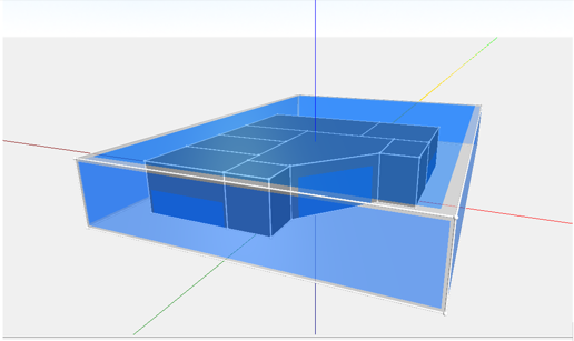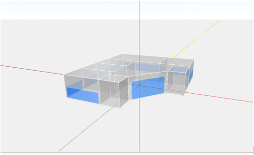 - Modelleer een ruimte óm het hele gebouw (let op dat de dakconstructie en buitenmuren nu automatisch een andere constructie krijgen, dus wijzig deze eventueel weer terug)