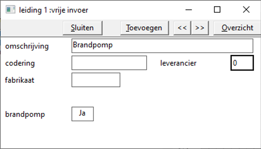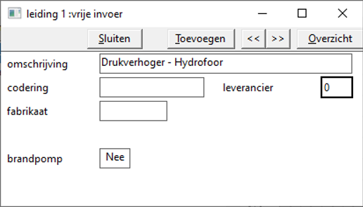 Als een pomp wordt aangemaakt en er wordt gekozen voor “Nee” in het vakje achter brandpomp, dan wordt er gerekend met drukverhoging in de leiding.